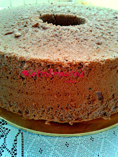 - Tuangkan adunan kedalam loyang kek chiffon.Bakar hingga masak.